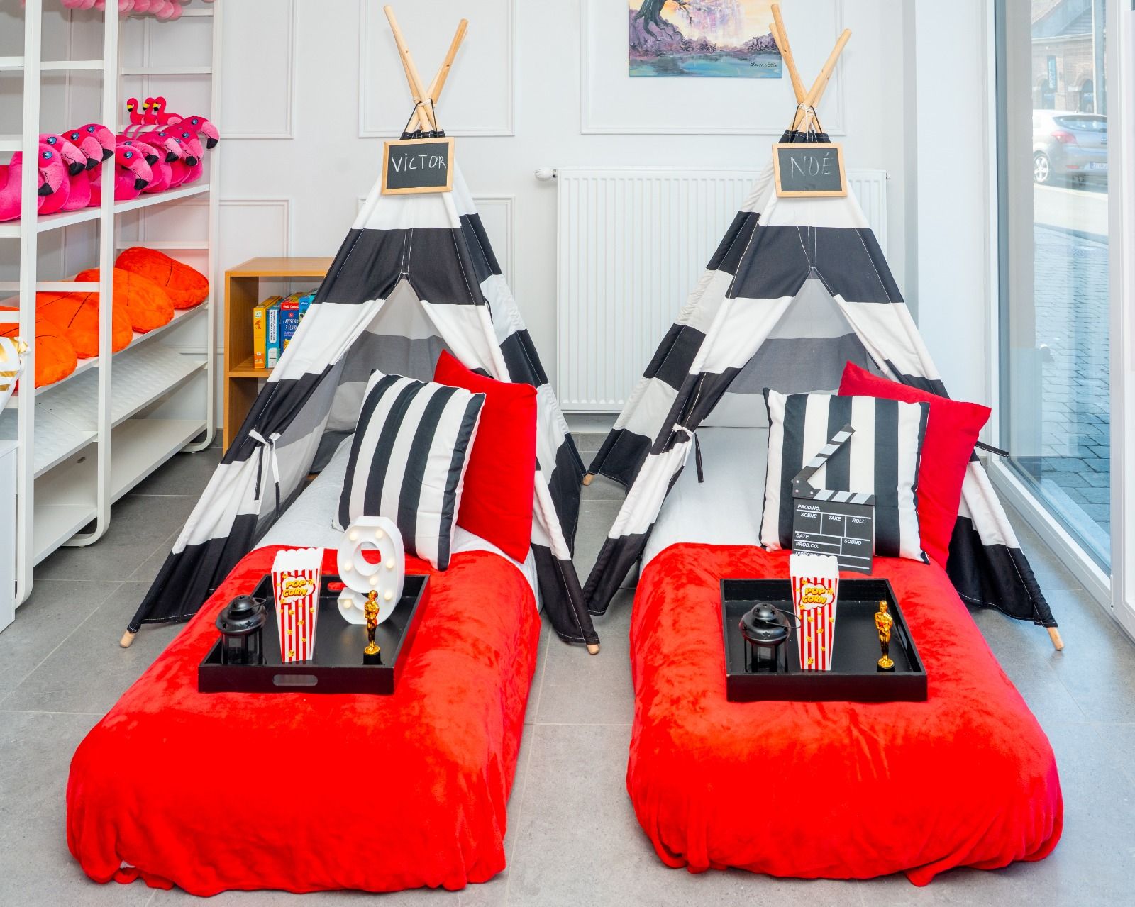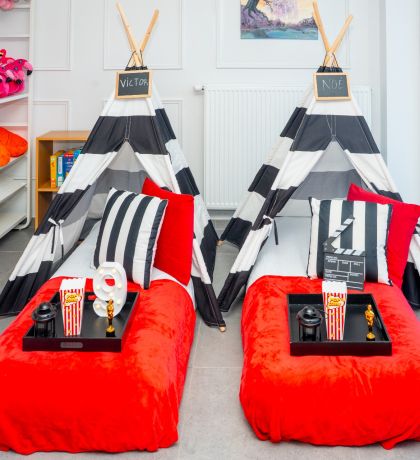 Transformez votre salon en salle de cinéma privée avec nos tipis décorés pour une soirée pyjama inoubliable. Ambiance cosy, popcorn et films préférés… le combo parfait pour les enfants et ados !